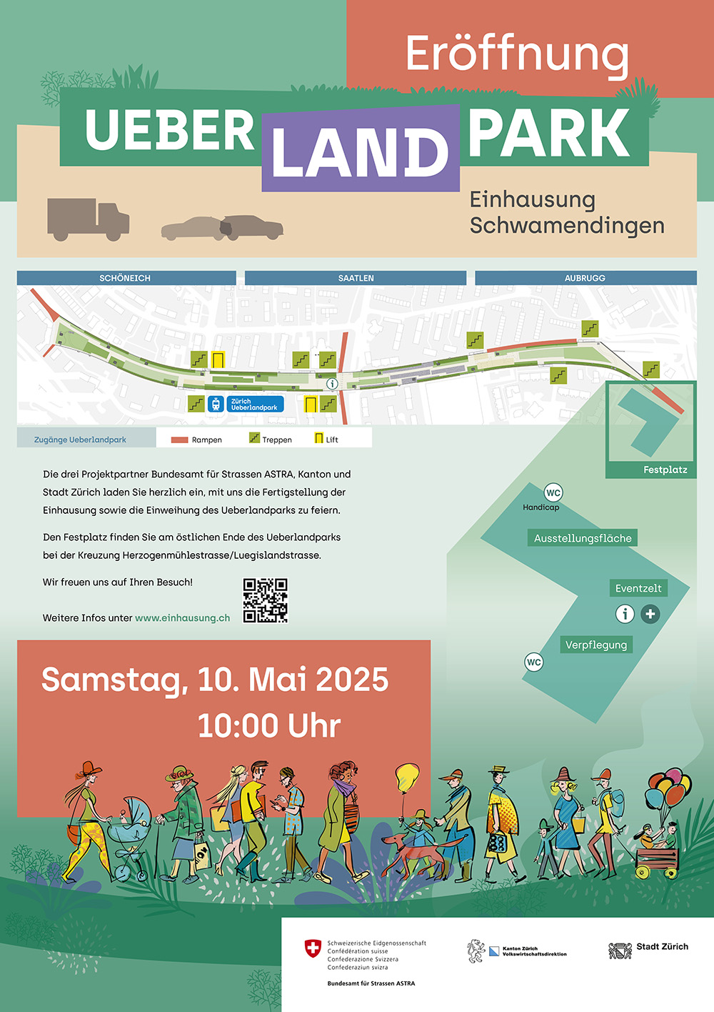 Im Mai 2025 wurde der Ueberlandpark auf der Einhausung Schwamendingen feierlich der Bevölkerung übergeben.